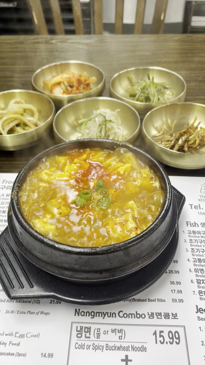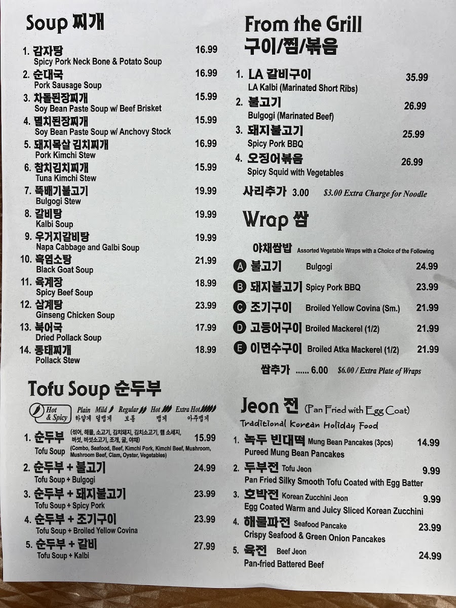 The menu is a treasure trove of Korean delights, brimming with dishes that not only promise satisfaction but also elevate the dining experience. Start your culinary journey with their signature Bibimbap (비빔밥), a colorful dish served in a hot stone pot, featuring an exquisite medley of assorted fish eggs, imitation crab, and seaweed salad. This dish, priced at $26.25, is complemented by a savory bowl of soup and delightful side dishes that will entice all your senses. For those who crave the ocean's bounty, the Marinated Uni Bibimbap (우니장비빔밥), topped with a perfectly fried egg and marinated uni sauce, is a must-try at $21.85.
